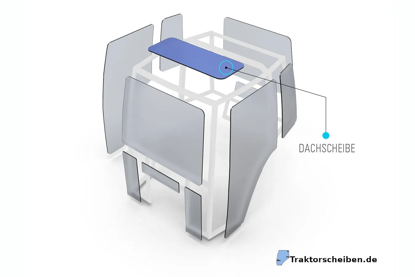 Dieses Dachsichtfenster ist für den oberen Kabinenbereich vorgesehen und ermöglicht zusätzliche Sicht nach oben. Es ersetzt beschädigte oder fehlende Dachverglasung und fügt sich passgenau in die vorhandene Kabinenöffnung ein.