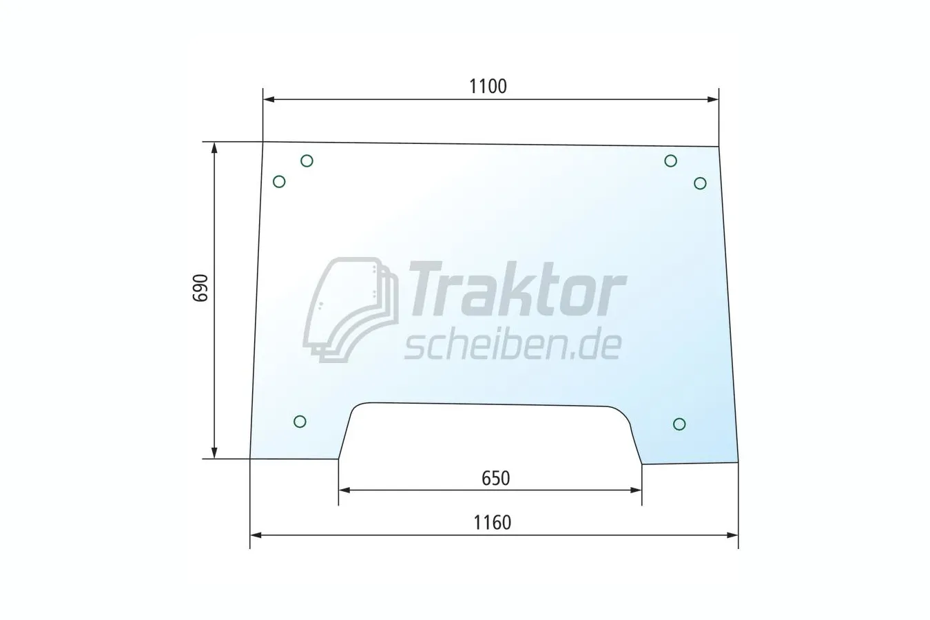 Frontscheibe klar mit 6 Bohrungen für CLAAS-RENAULT Ceres & JOHN DEERE 3000 Serie