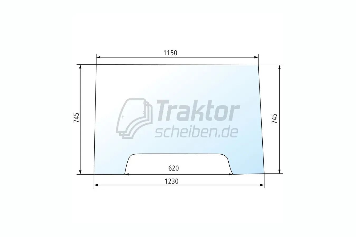 Diese Frontscheibe ohne Bohrungen ist für den vorderen Verglasungsbereich von CLAAS-RENAULT Traktoren der Ceres Serie vorgesehen. Zusätzlich ist sie passend für JOHN DEERE Traktoren der 3000er- und 3010er-Serie und ersetzt beschädigte oder fehlende Windschutzverglasung passgenau.