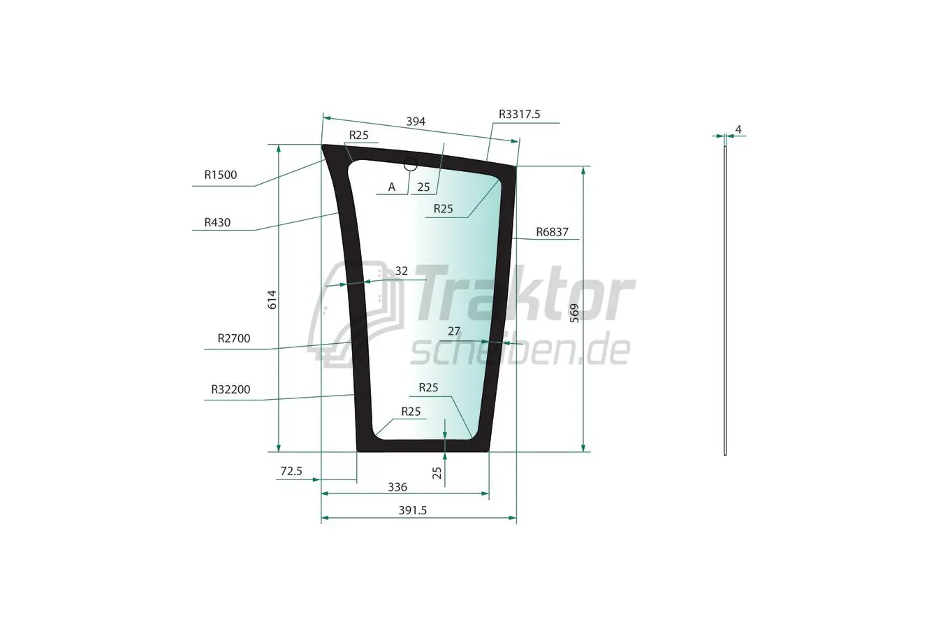 Frontscheibe unten rechts für FENDT Farmer409 & Fendt716 Traktor
