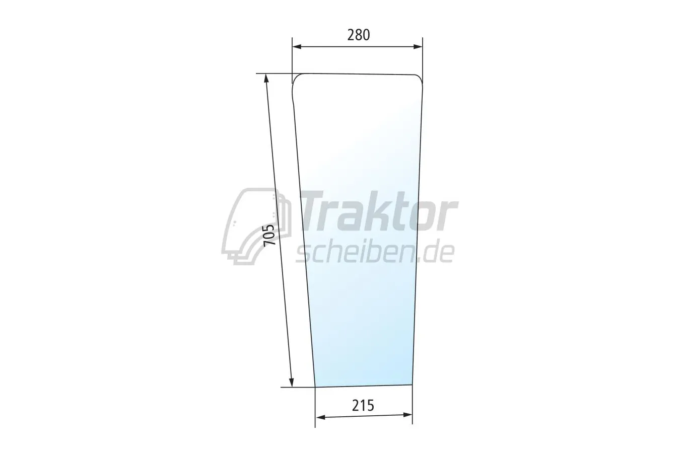 Diese getönte Frontscheibe unten rechts ist für den unteren rechten Bereich der Windschutzverglasung von STEYR Traktoren der M-Serie sowie CASE IH CS-Modellen vorgesehen. Sie ersetzt beschädigte oder fehlende Verglasung passgenau.