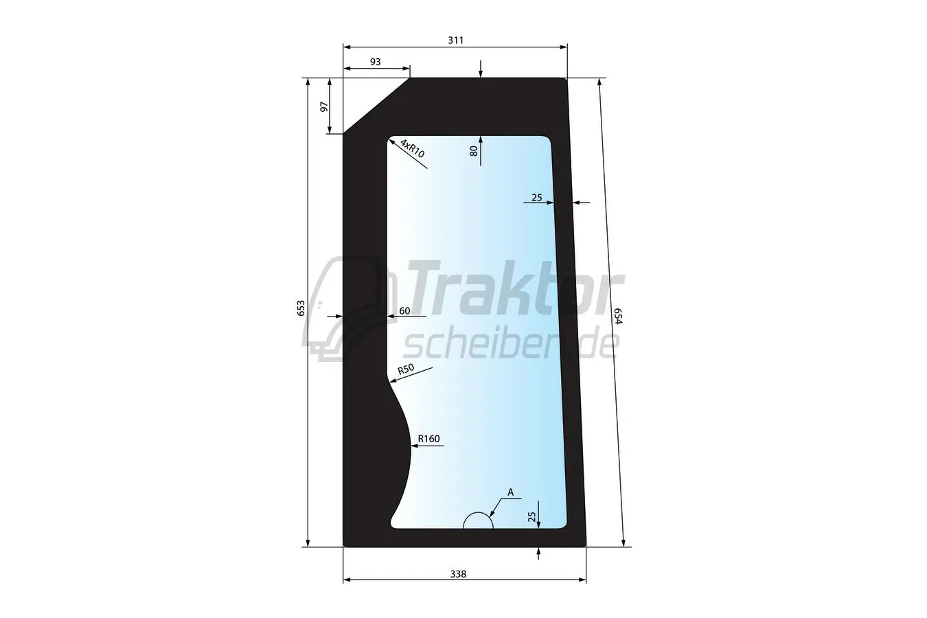 Diese Frontscheibe für den unteren rechten Kabinenbereich ist für verschiedene Traktoren von Ford, New Holland, Fiat und Case IH geeignet und wird unter anderem bei Modellen der TM- und MXM-Serie eingesetzt.
