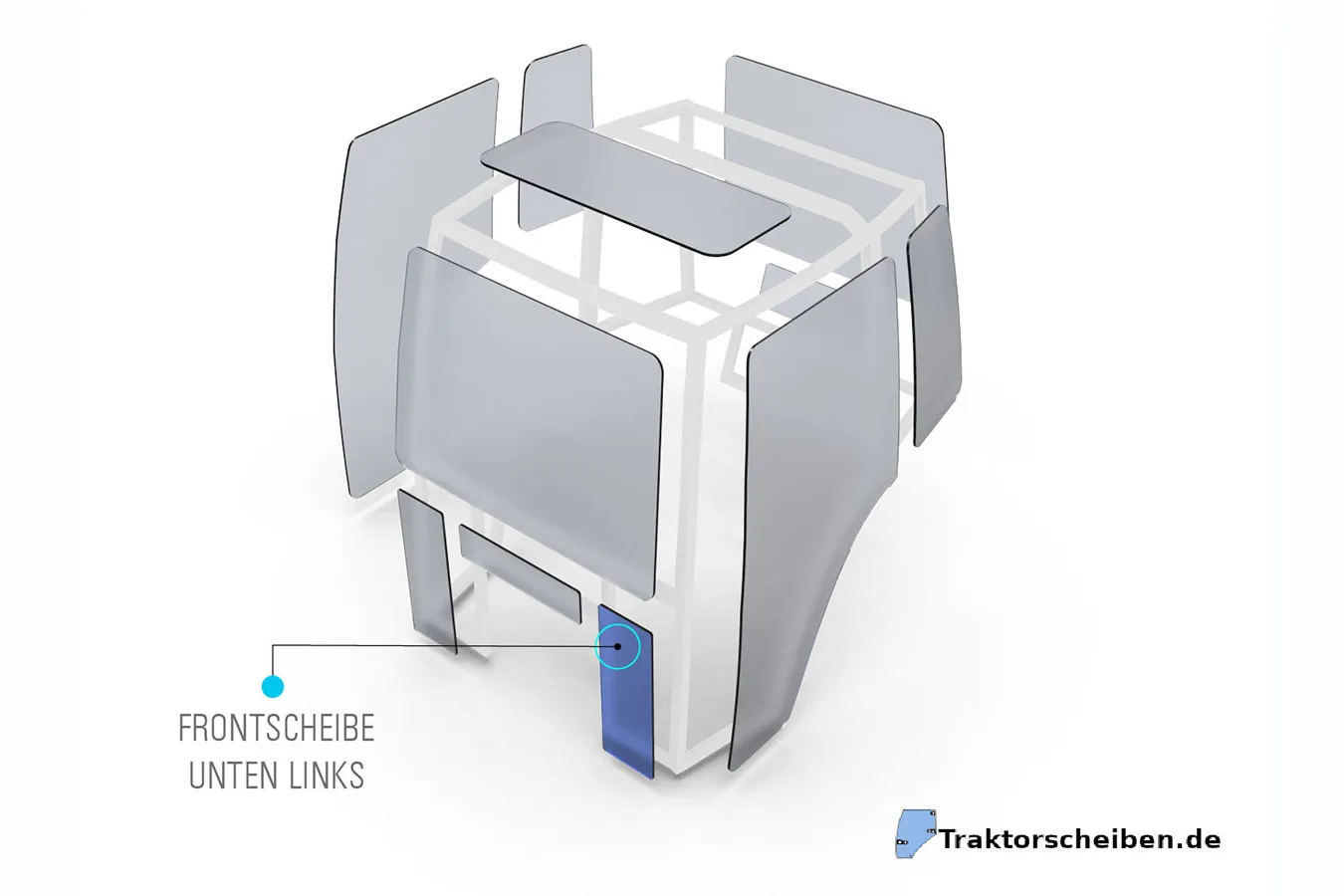 Diese getönte Frontscheibe ist für den unteren linken Bereich der Kabine von VALTRA VALMET und MASSEY Traktoren vorgesehen. Sie wird im unteren Frontbereich eingesetzt und ist auf die entsprechenden Modelle abgestimmt. Wenn Sie eine passende Frontscheibe für Ihren Traktor kaufen möchten, bietet diese Ausführung eine zuverlässige Lösung für verschiedene Baureihen im landwirtschaftlichen Einsatz.