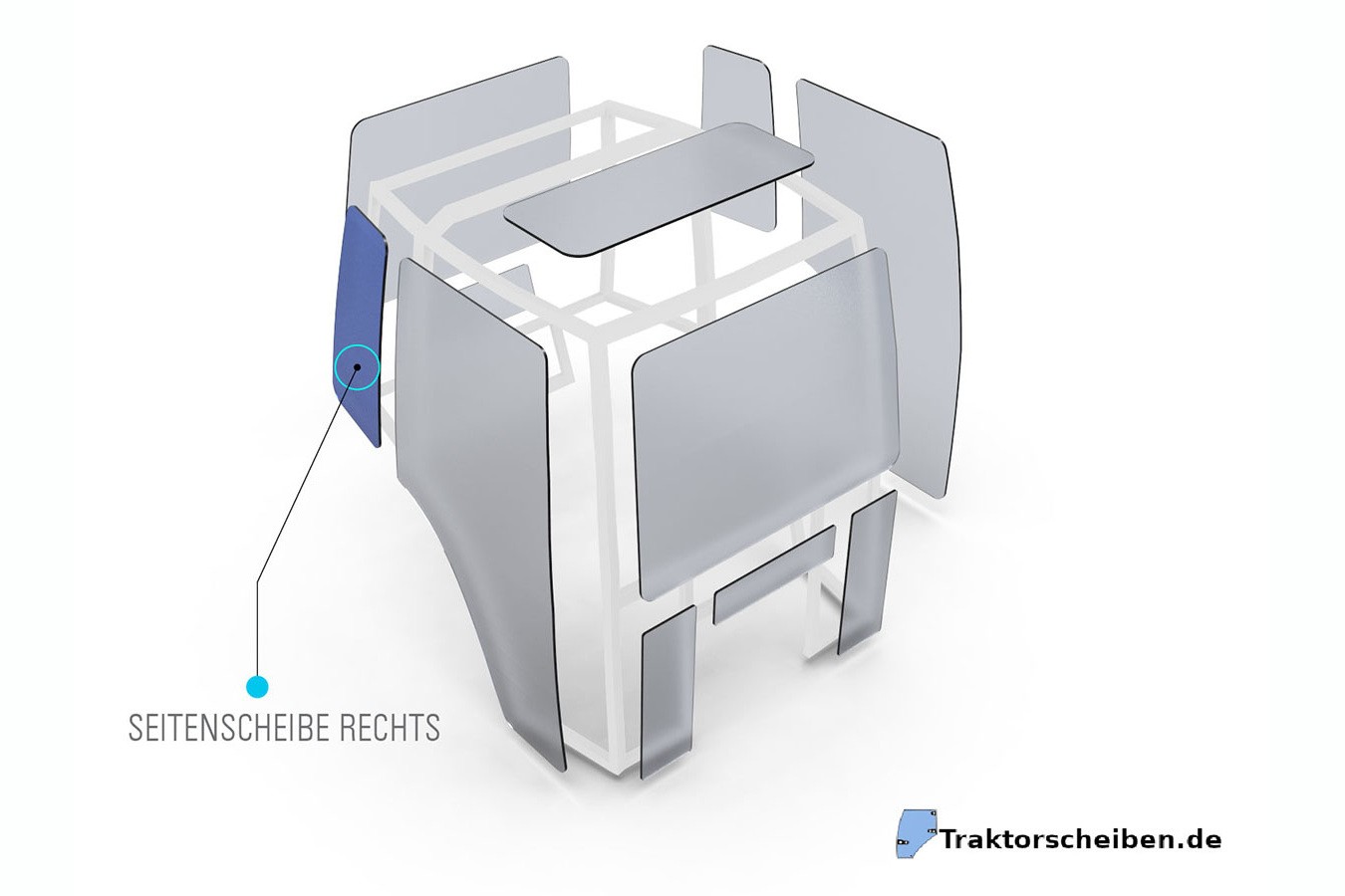 Getönte Eckscheibe rechts passend für NEW HOLLAND & CASE IH Traktoren