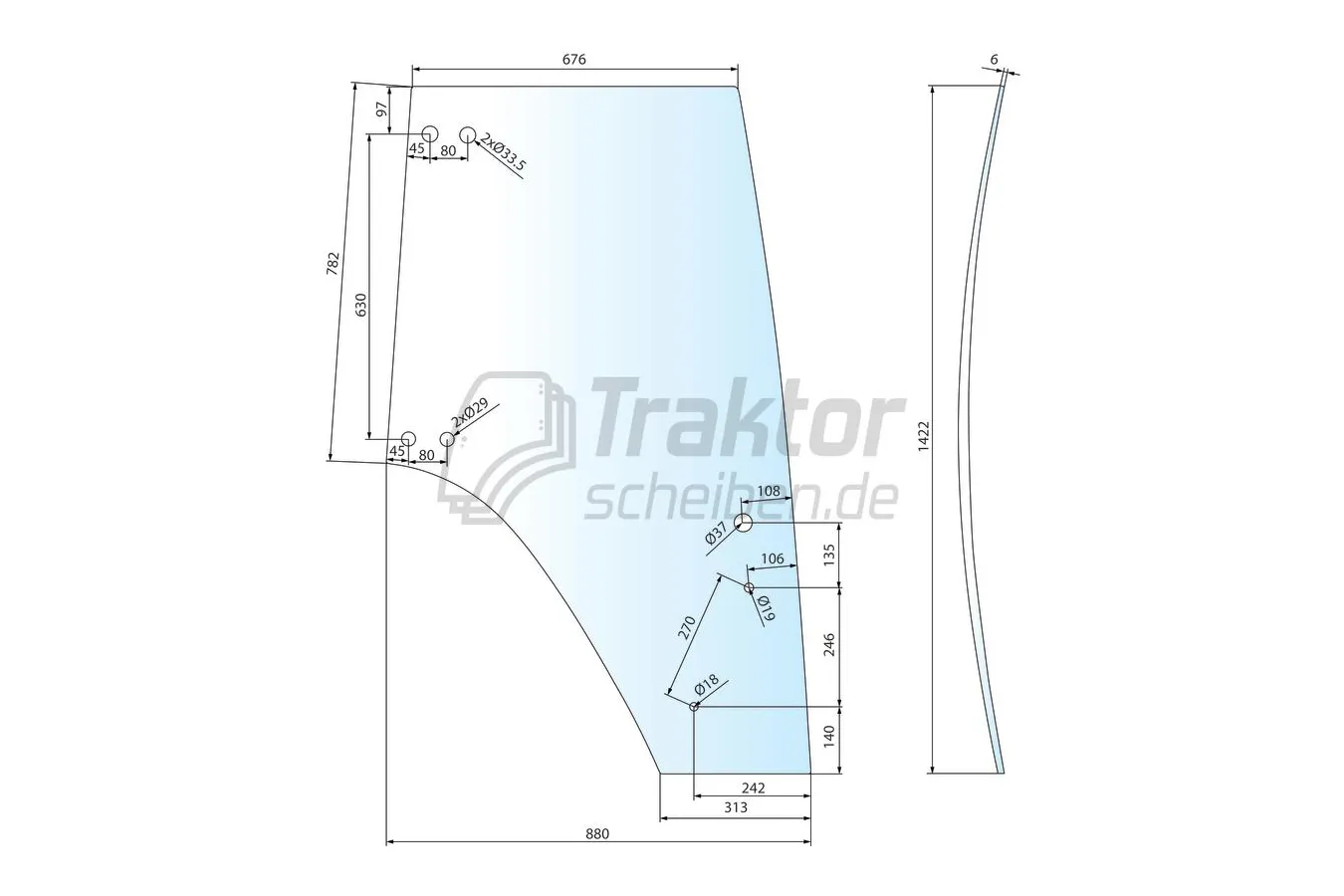 Türscheibe links für FENDT Favorit712 & Fendt413 Traktor