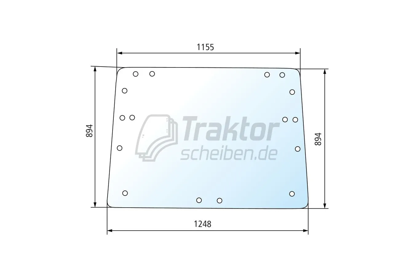 Diese getönte Heckscheibe ist für den hinteren Kabinenbereich von CLAAS-RENAULT Traktoren vorgesehen. Sie wird im Heckbereich eingesetzt und ist durch ihre flache Bauform für verschiedene Kabinentypen wie TS, TX und TZ geeignet. Die Ausführung mit 16 Bohrungen erleichtert die eindeutige Zuordnung zur passenden Variante.