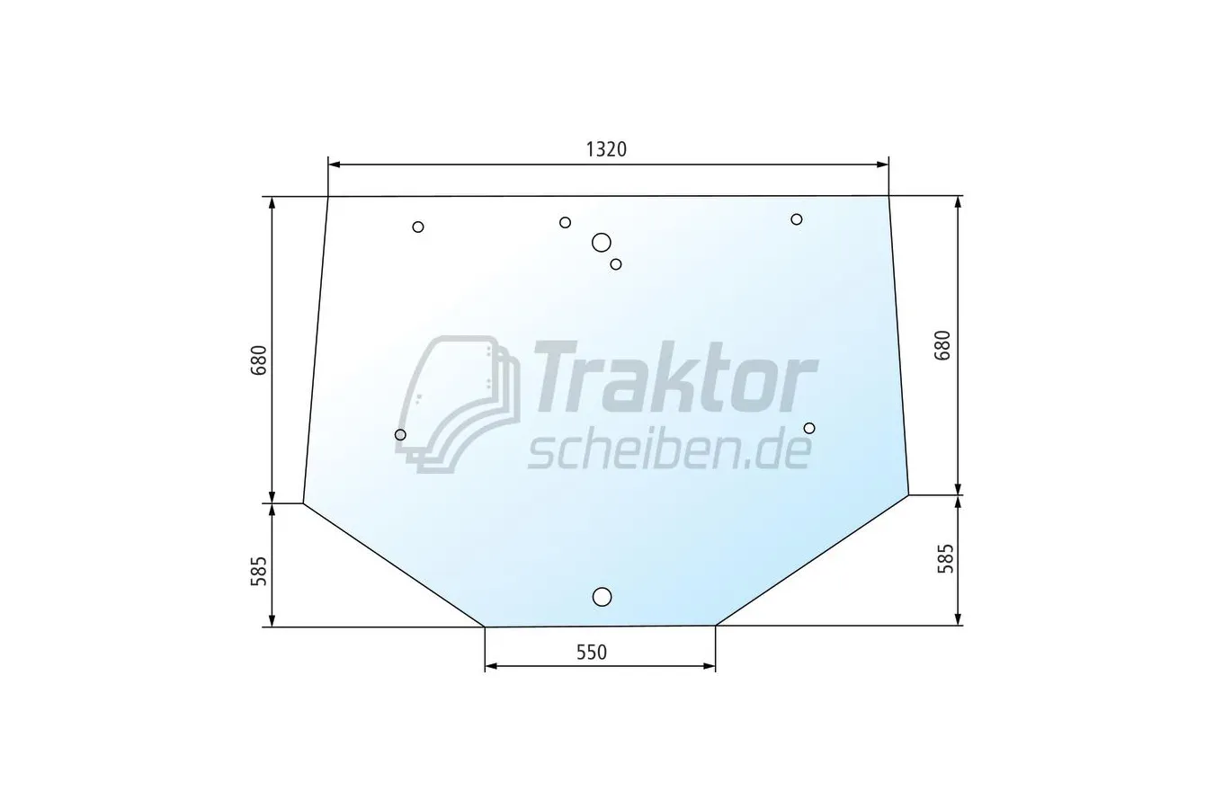 Getönte Heckscheibe mit 8 Bohrungen für FORD Traktor Serie 70