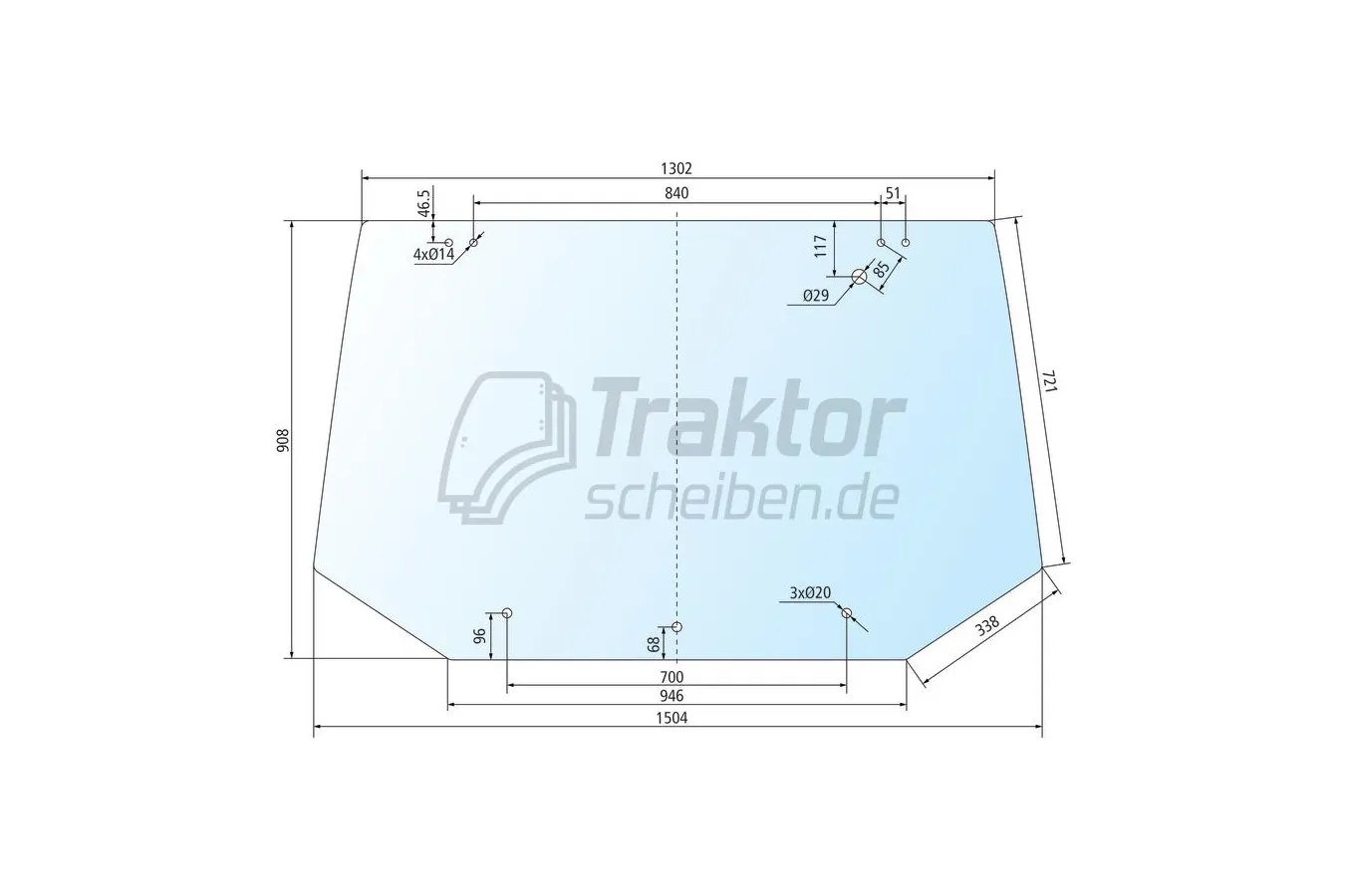 Getönte Heckscheibe oben mit 8 Bohrungen für FORD Traktor Serie 40