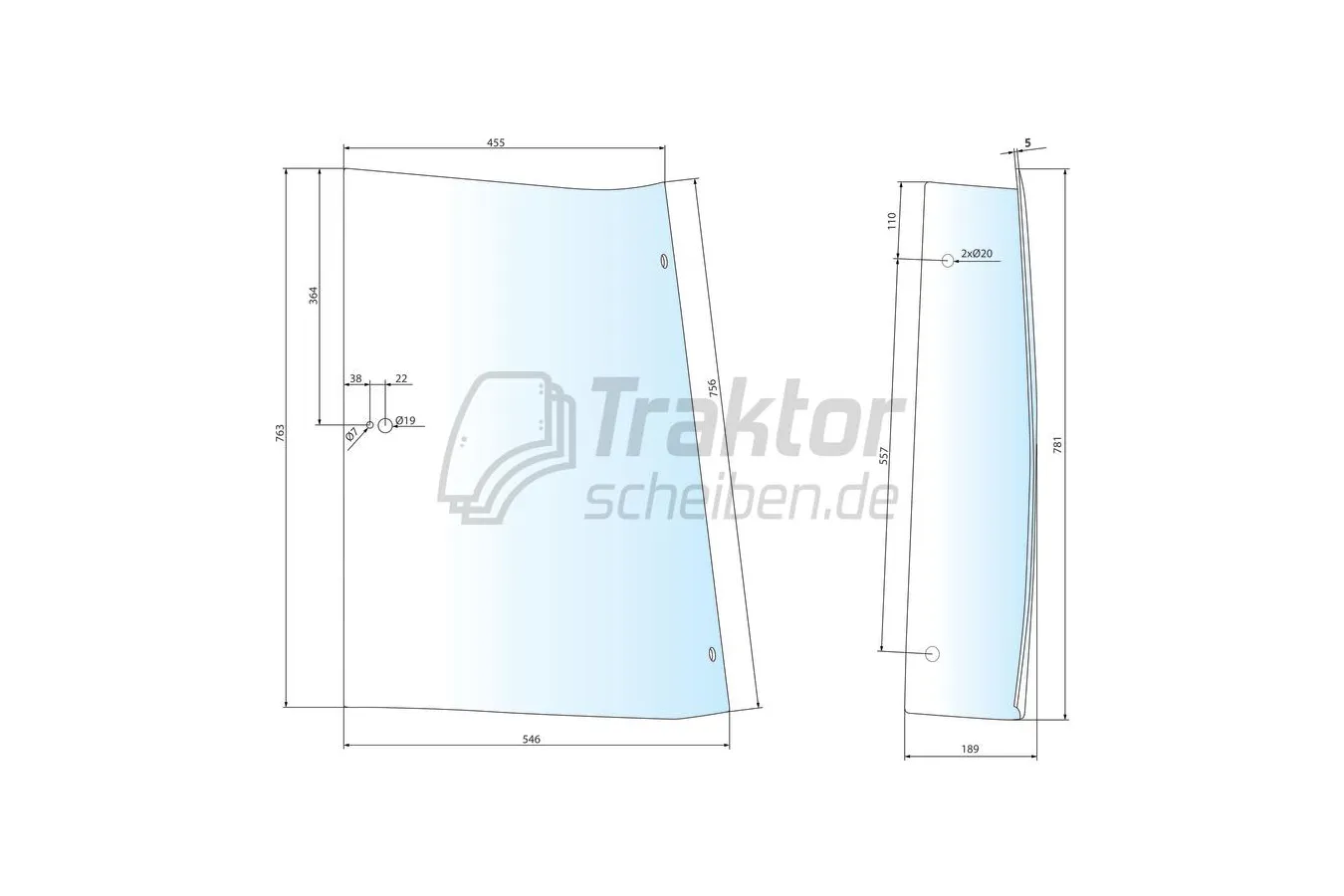 Seitenscheibe links für FENDT Favorit818 & Fendt310 Traktor