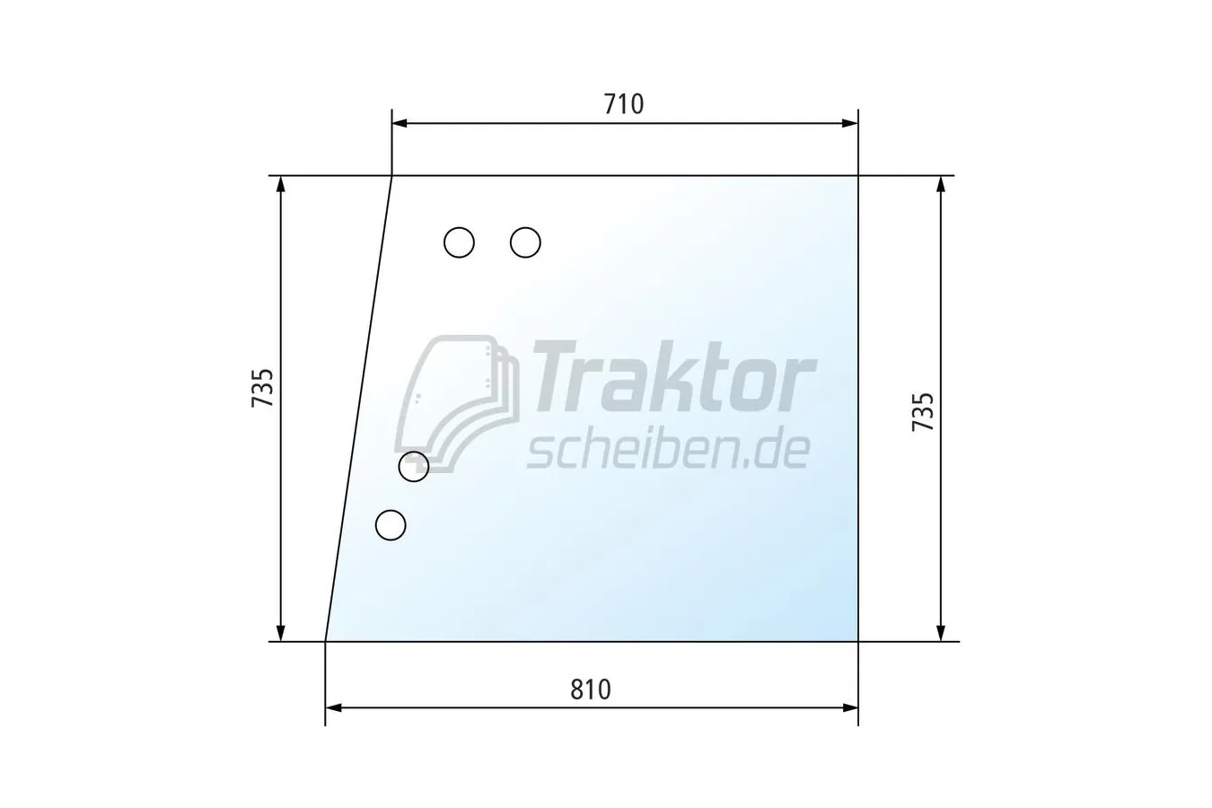 Diese klare Seitenscheibe oben rechts ist für den oberen rechten Seitenbereich von FENDT Traktoren der Favorit 600er Serie vorgesehen. Sie verfügt über 4 Bohrungen zur Befestigung und wird bei mehreren Modellen der Baureihe eingesetzt.