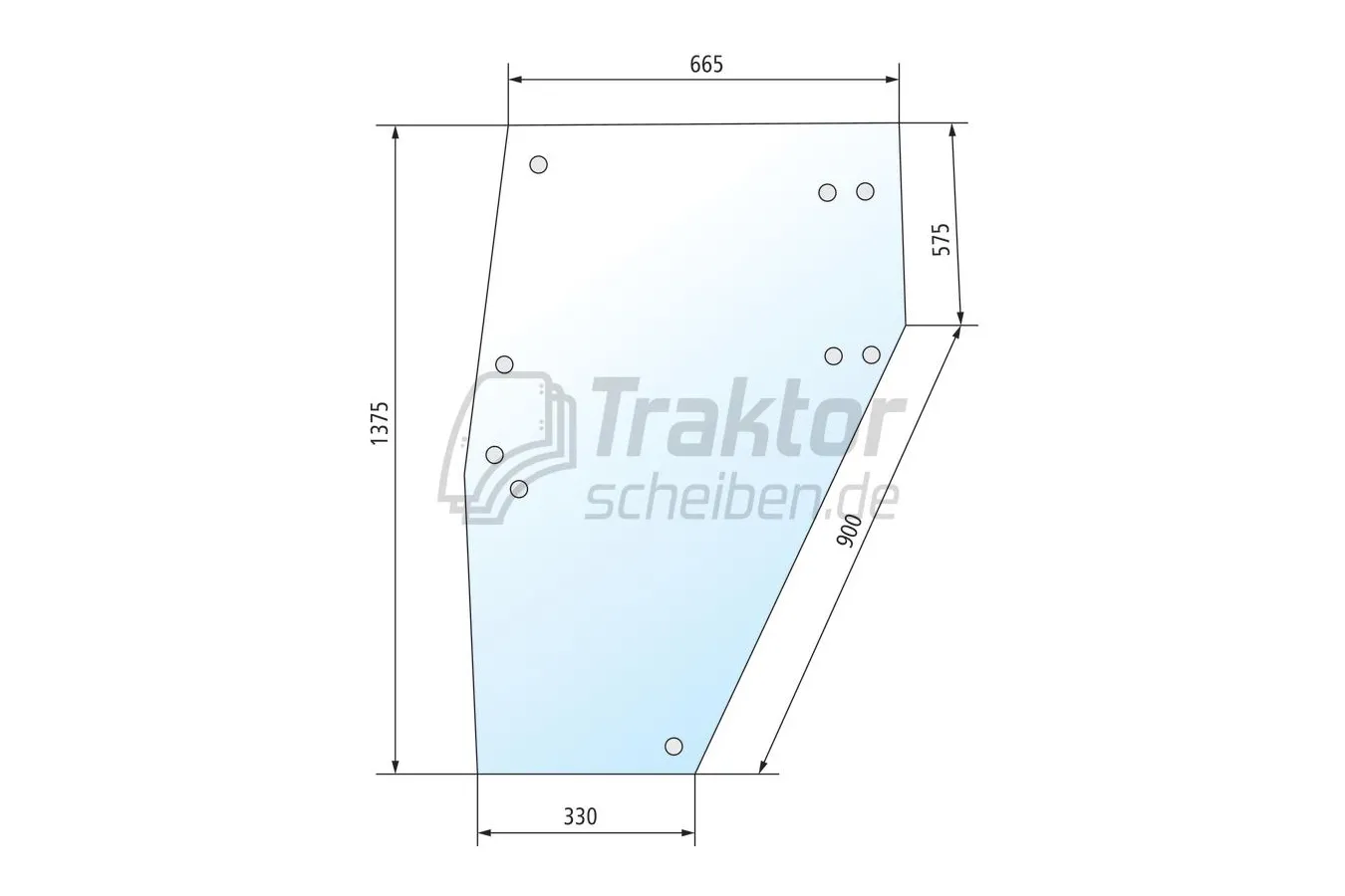 Türscheibe rechts getönt für DEUTZ-FAHR DX 4.10–7.10 – neue Version mit 4-Loch Scharnierbefestigung