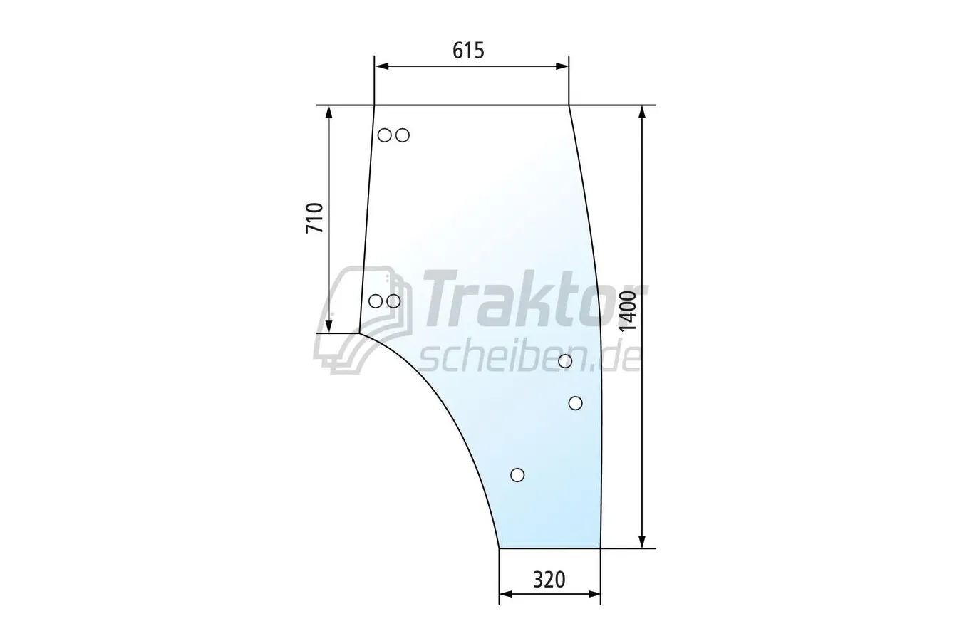 ⚠️ Hinweis: Es gibt optisch ähnliche Scheiben mit unterschiedlichen Maßen für dieselben Traktormodelle. Bitte vergleichen Sie Form, Maße, Bohrungen und Kabinentyp vor der Bestellung.