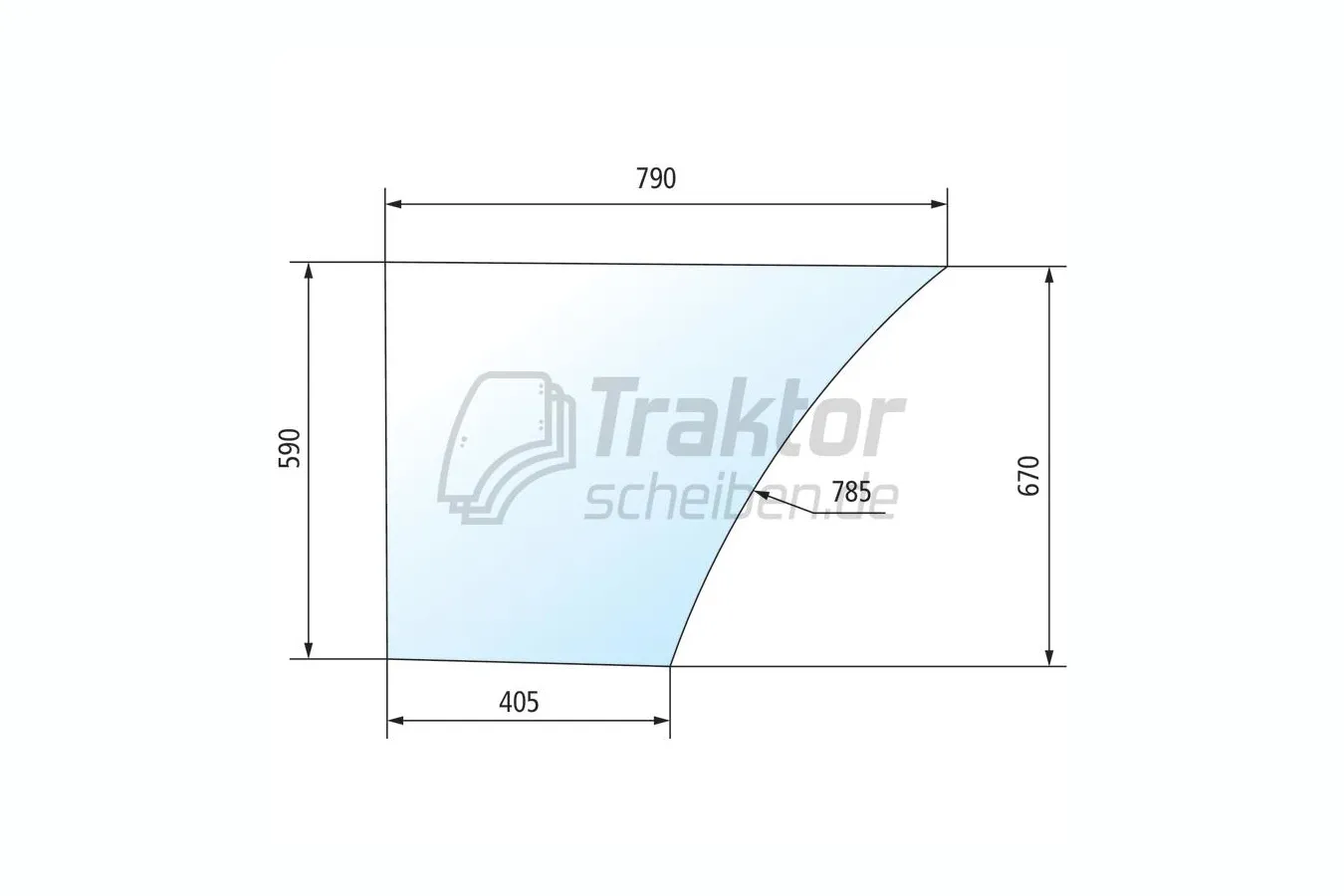 Getönte Türscheibe unten links flach für Traktor Kabine