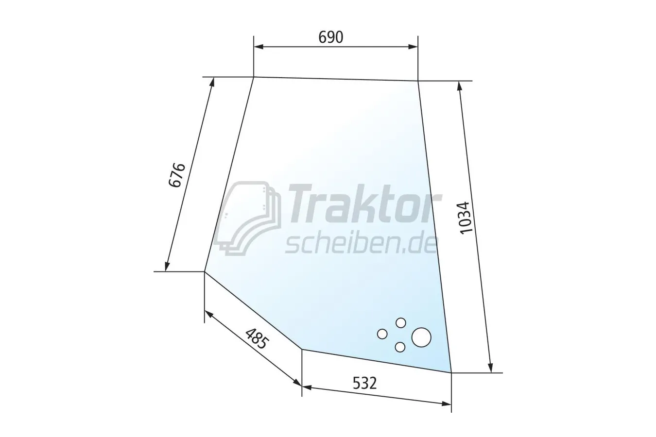 Diese Türscheibe oben links ist für den oberen Bereich der Kabine von VALTRA und VALMET Traktoren vorgesehen. Sie wird im oberen Türbereich eingesetzt und ist auf die entsprechenden Modelle abgestimmt. Wenn Sie eine passende Türscheibe für Ihren Traktor kaufen möchten, bietet diese Ausführung mit 4 Bohrungen eine geeignete Lösung für verschiedene Baureihen im landwirtschaftlichen Einsatz.